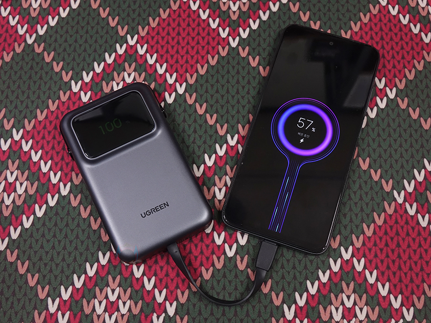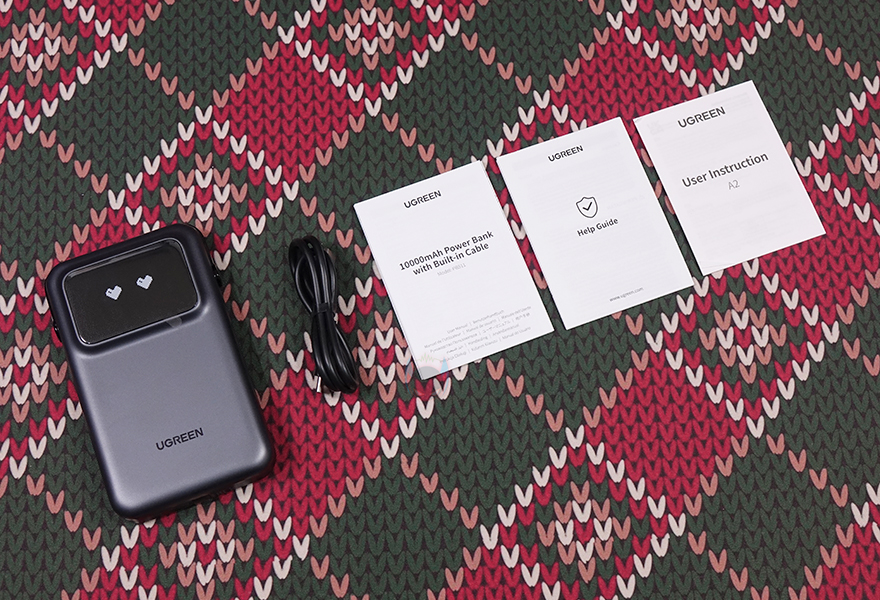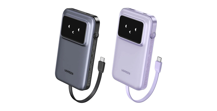 UGREEN Uno Power Bank with Built-in USB-C Cable 10,000mAh Portable Charger PD 30W Fast Charging Battery Pack with TFT Display -