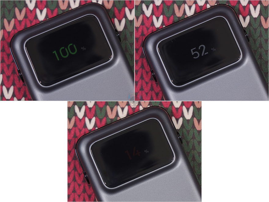 직접, 유그린 Uno 30W 보조배터리를 사용해 보면, 오른쪽 측면에 있는 전원 버튼을 누르면 바로 전면 스크린 화면이 켜집니다. 그리고, Uno 시리즈답게 전원이 켜질 때 Hi 이모티콘이 나오며, 배터리 잔량 수치는 % 표기로 색상은 그린입니다. 그리고, 전원이 켜진 상태에서 전원버튼을 3초 이상 누르면 자사의 다른 보조배터리 제품들처럼 저전력 모드로 전환되며, % 표기 위해 저전력 모드 표기도 켜집니다. 또한, 전원버튼을 6초 이상 누르고 있으면, 전원이 Off 되는데, 이때도 Bye라는 이모티콘이 나오죠. 참고로, 전원이 켜진 상태에서 전원버튼을 연속 2번 누르면 화면을 On/Off 할 수 있고, 전원을 켠 상태에서 20초 동안 아무 연결을 하지 않으면 하트모양의 대기상태 이모티콘이 작동됩니다.