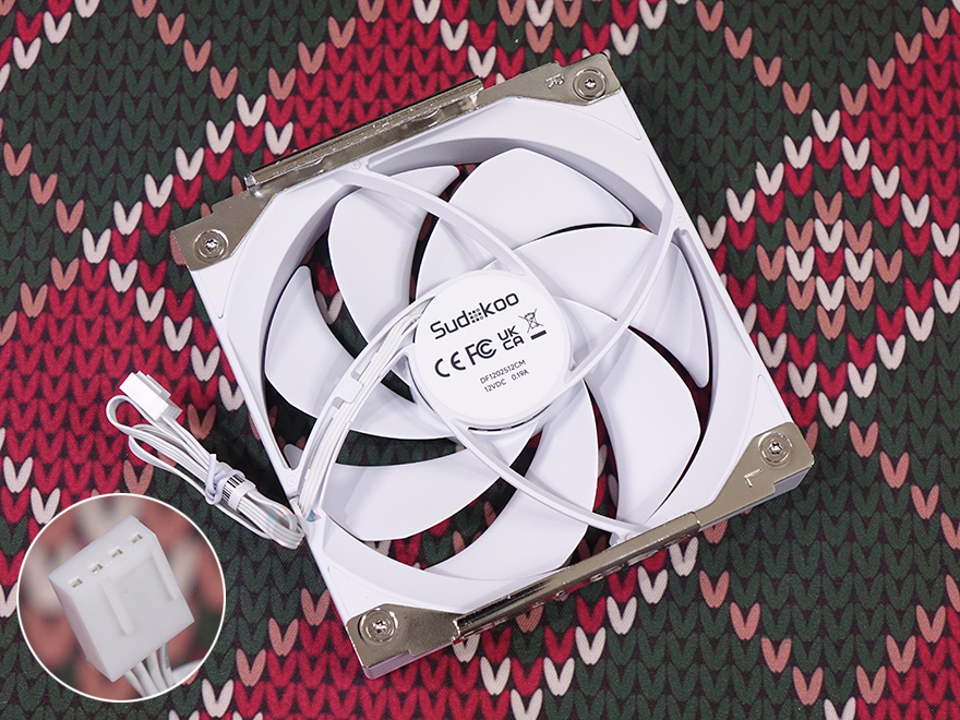좀 더 자세히 살펴보면, 쿨러 전면에는 120mm 팬이 장착되어 있는데, 쿨러 색상에 맞춰서 팬 색상 역시 통일시켰으며, 개봉시 팬 중앙 부분에는 보호비닐이 부착되어 있습니다. 팬 날개(Blade)는 7개이며, 외형적인 디자인은 SK700V에 장착되었던 팬과 동일합니다. 팬 모서리 부근에 방진패드도 기본 적용되었죠. 다만, 팬 사양은 약간 차이를 두고 있습니다. SK700V는 최대 2200RPM(±10%)으로 작동하고, SK620V는 최대 2000RPM(±10%) 작동으로 조금 낮죠. 듀얼 팬 구성이기 때문에 팬 속도를 낮추면서 소음도 줄였다고 볼 수 있습니다. 그리고, 전면 팬 같은 경우에는 뒤에서 다시 확인하겠지만, 듀얼 타워 쿨러인 만큼 메모리 간섭을 고려해 높낮이 조절을 할 수 있는데, 최대 20mm까지 위로 올릴 수 있죠.
