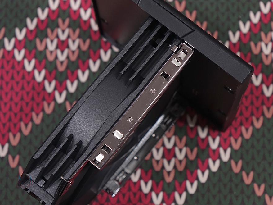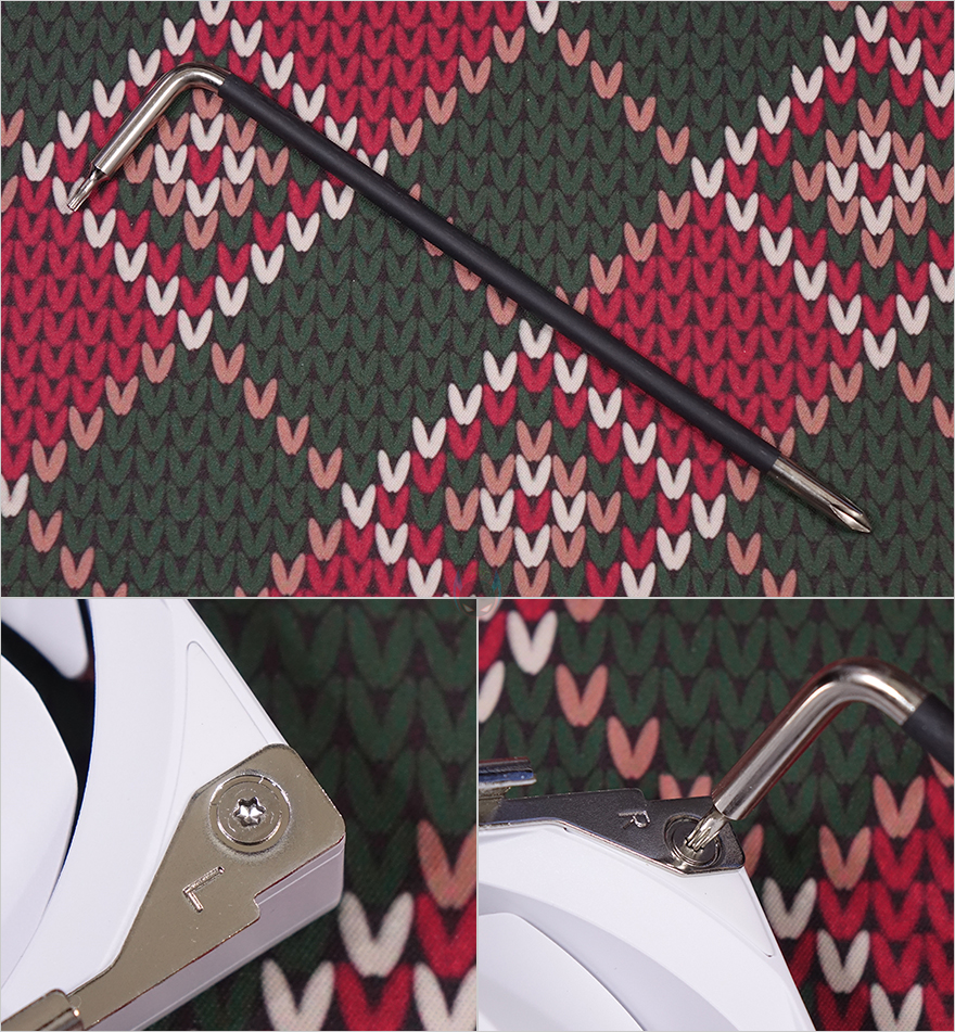 이렇게 쿨러 상단부가 분리되면, 앞서 확인한 전면 팬 역시 쿨러에서 완전 분리가 가능합니다. 높낮이조절을 위로 끝까지 올리면 분리가 되고, 역시 측면에 L-레일 잠금장치 디자인(L-Rail Lock Mount Design)이 적용되었죠. 그리고, 팬 작동은 4pin PWM 방식이며, 팬 양쪽에 있는 레일 장치는 제공되는 공구 드라이버를 사용해 분리할 수 있어서, 똑같은 120mm 크기 팬이면 다른 팬으로 교체 장착할 수 있습니다.