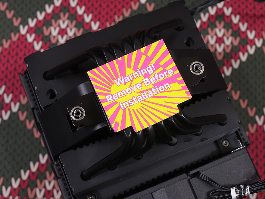 쿨러 측면에는 커버 처리가 되어 있는데, 중앙부분에 내부 팬 공기 유입을 올리기 위해 메쉬(Mesh) 디자인이 일부 적용되었으며, 앞서 상단부에서 확인한 디지털 스크린과 팬의 연결 작동 케이블은 쿨러 측면에 배치되었는데, 팬은 4 pin PWM 방식이고, 디지털 스크린은 메인보드 내부 USB 헤더에 연결하는 방식입니다. 그리고, 쿨러 후면은 SK700V와 마찬가지로 방열핀이 그대로 노출된 형태로 전체 방열핀 배열 모양이 엠보싱처럼 보이게 적용되었죠. SK620V 쿨러의 히트파이프(Heatpipe)는 SK700V보다 1개가 적은 지름 6mm에 6개가 적용되었으며, 쿨러와 맞닿는 베이스 부분에는 개봉 시 보호스티커가 부착되어 있으며, 사용 전 제거를 해야 합니다. 스티커를 제거하면 깔끔하게 래핑처리된 표면을 확인할 수 있죠.