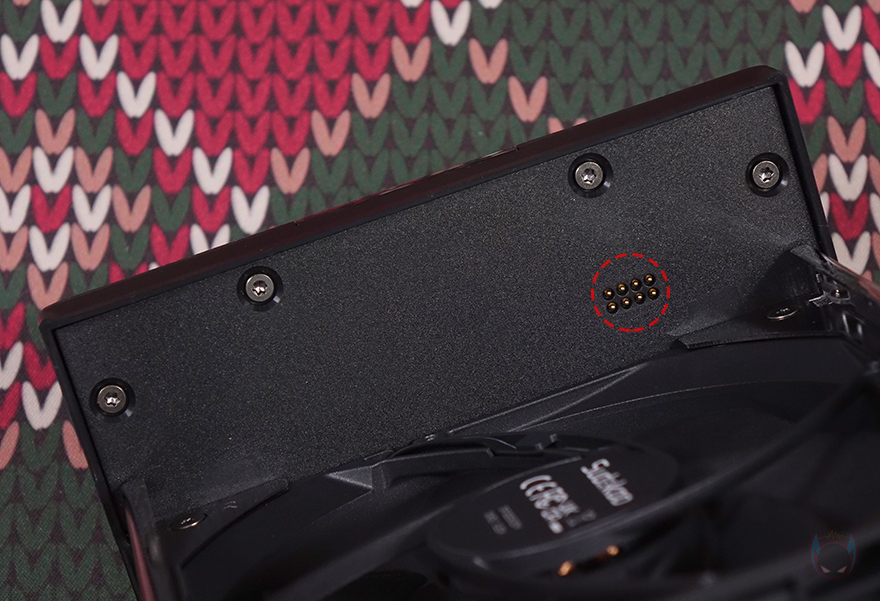 분리된 상단부에 장착된 중간 팬 역시 전면과 동일한 팬이지만, 팬 프레임 아래 양쪽 모서리부분이 대각선 방향으로 마감처리 되었기 때문에, 사실상 다른 120mm 팬과 교체 호환은 되지 않습니다. 그리고, 측면에는 슬라이드 방식으로 간편하게 분리/장착할 수 있는 L-레일 잠금장치 디자인(L-Rail Lock Mount Design)이 적용되어 있으며, 팬은 따로 작동 연결 케이블이 있는 게 아니라 상단 디지털 스크린 내부에 내장으로 연결되어서 디지털 스크린이 포고핀으로 쿨러 상단과 접촉해 작동할 때 팬도 함께 작동되는 방식입니다. 그리고, 쿨러 상단부에는 드라이버 표시를 해놨는데, 해당 표시는 SK620V가 듀얼 타워 쿨러이기 때문에 다른 듀얼 타워 쿨러들처럼 쿨러 중앙을 통해 마운트 장착을 할 수 있다는 걸 알려주는 표시입니다.