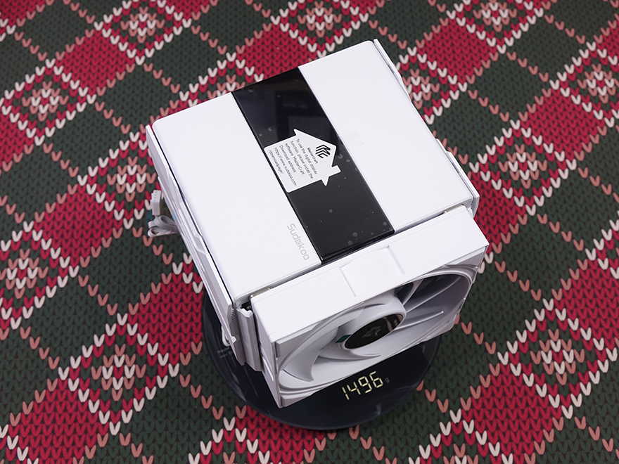 본격적으로 Sudokoo의 SK620V 쿨러를 살펴보면, 일단, SK620V 역시 SK700V와 마찬가지로 쿨러 상단에 디지털 스크린(Digital Screen) 적용 유무에 따라 SK620과 SK620V로 나뉩니다. 디지털 스크린이 없으면 SK620이고, 디지털 스크린이 있으면 SK620V죠. 그리고, 쿨러 색상은 앞서 제품 박스에서 미리 확인했듯이 블랙(Black)과 화이트(White) 2가지 색상으로 출시했습니다. 이전 시간에 먼저 만났던 싱글팬 타워의 SK700V와 비교해 보면 높이는 비슷하지만, SK620V가 듀얼 팬을 구성하기 때문에 뒤로 길이가 더 긴 것을 쉽게 확인할 수 있죠. 무게 역시 약 1.5kg로 300g 정도 더 무겁습니다.