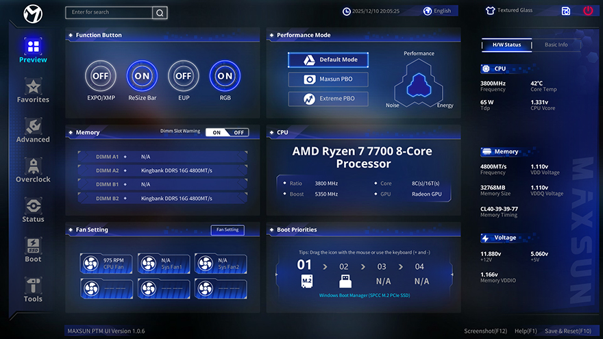 중국 메인보드/그래픽카드 PC하드웨어 전문업체 맥선(MAXSUN)이 10월 26일 자로 자사 AMD 800시리즈 칩셋 메인보드에 PMT 바이오스(BIOS) 적용을 공식화했다. 원래 맥선의 PMT 바이오스는 올해 출시한 자사의 인텔(Intel) 800 시리즈 칩셋 메인보드에서 적용되던 바이오스 인터페이스로 모바일 앱에서 영감을 얻어 디자인했다. 이미 피스커뮤에서도 맥선의 인텔의 Z8980/B860 메인보드를 리뷰하면서 PMT 바이오스를 여러 번 언급했는데, 이제 자사의 AMD X870/B850 메인보드에서도 PMT 바이오스가 적용되기 시작했다. 그래서, 이번 시간에는 맥선의 AMD 800 시리즈 메인보드에 PMT 바이오스를 업데이트해보려고 한다.