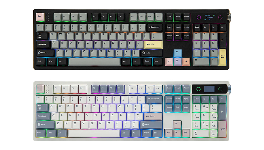 에포메이커(EPOMAKER)의 대표적인 인기 시리즈 모델 중 하나인 TH 시리즈에 또하나의 풀-배열 키보드로 출시한 TH108 프로(PRO)는 기존 TH108 키보드의 108 키에서 4 키를 줄이고 LCD 스크린 노브를 적용해 전형적인 104 키 풀-배열로 나왔습니다. 108 키에서 사용되던 4개의 키는 사실상 부가기능이기 때문에 사용빈도가 낮은 경우가 많다는 점을 고려해 과감히 제외하고, 트렌드를 따라 LCD 스크린에 노브 컨트롤을 적용했죠. 그래서, 전형적인 104 키 풀-배열을 선호하는 소비자에겐 오히려 TH108 프로가 더 끌릴 수 있습니다. 또한, 단순히 LCD 스크린 노브만 추가되지 않고, 배터리 용량도 2,000mAh 더 늘려 무선 사용시간을 늘렸죠. 여기에 키캡도 투톤 컬러에 포인트 키캡까지 조합해 좀 더 에지다운 클래식 모습을 갖추었습니다. 물론, 포인트 키캡의 문자가 단순 인쇄라는 점이 조금 아쉽죠. 그래도, 흡음재와 패드가 5중으로 적용되고, 기본 2가지 스위치 모두 소음이 낮은 스위치를 적용해서 소음에도 상당히 신경 썼고, 디자인도 무난해 호불호가 없는 블랙과 화이트 2가지로만 출시해서 게임과 사무용 겸용으로 사용하고 싶은 저소음의 풀-배열 키보드를 원했다면, 에포메이커의 TH108 프로를 추천합니다.