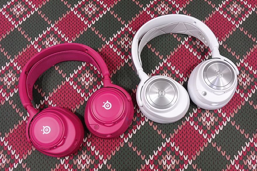 본격적으로 스틸시리즈 ARCTIS NOVA 7 Wireless Gen2 무선 헤드셋을 살펴보면, 앞에서 잠깐 언급했듯이 이번 2세대에서는 1세대 기본 색상인 블랙과 화이트 외에 새로운 색상으로 핑크색상의 마젠타가 추가되었습니다. 색상을 제외하면 전체적인 디자인에는 큰 변화가 없으며, 앞서 만났던 상위 모델 ARCTIS NOVA PRO와 비교해도 디자인의 베이스는 이제 노바 시리즈 특유의 디자인을 유지하고 있죠. 무게는 약 326g으로 일반적인 음악용 무선 헤드셋보다는 좀 더 무겁습니다. 참고로, ARCTIS NOVA 7 Wireless Gen2 무선 헤드셋 역시 PC, XBOX, PS 플랫폼 기본 지원에 따라 모델명은 구분하고 있으며, 국내 정식수입사인 (주)앰엔웍스스토어(https://smartstore.naver.com/twoacei)에서 구입할 수 있습니다.