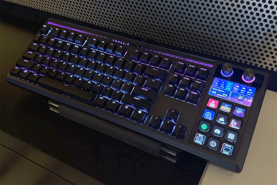 한국 시간으로 1월 6일부터 9일까지 미국 라스베가스에서 열린 세계 최대 IT/가전제품 박람회 CES 2026에서 미국의 대표 PC하드웨어 전문업체 커세어(Corsair)가 자사의 스트리밍기기 전문브랜드 엘가토(Elgato)와 첫 합작 콘셉트의 키보드 '갤리온 100 SD(GALLEON 100 SD)'를 공개했다. 갤리온 100 SD 키보드는 풀-배열 사이즈에 키 배열은 텐키리스를 가졌고, 숫자키패드가 있는 자리에 엘가토가 자랑하는 스트림덱 기능을 접목했다. 그동안 커세어와 엘가토가 따로 생태계를 구축했다면, 이제는 하나로 합쳐진 하드웨어 제품을 선보이기 시작한거다. 당연히 87키 배열의 키들은 뱅가드 키보드에서 선보인 AXON 기술의 8000Hz 하이퍼폴링을 지원하며, 플래시탭 SOCD 적용, 내부에는 총 6겹의 폼을 적용해 소음을 최소화되도록 했다. 이밖에도 알루미늄 상판, 마그네틱 쿠션 팜레스트가 기본 포함이다. 숫자키패드 자리에 배치된 스트림덱은 2개의 버튼식 회전 다이얼과 총 12개의 LCD키가 배치되어 있으며, 다이얼과 LCD 키 사이에는 디스플레이를 적용했다. 키보드와 스트림덱이 접목되었기때문에, 커세어의 키보드 공용 프로그램 웹허브와 스트림덱 전용 앱을 제품 하나에서 다룰 수 있으며, 갤리온 100 SD은 현재 커세어 홈페이지에서 사전예약 중이다. 출시가는 349.99달러(한화 약 52만원).