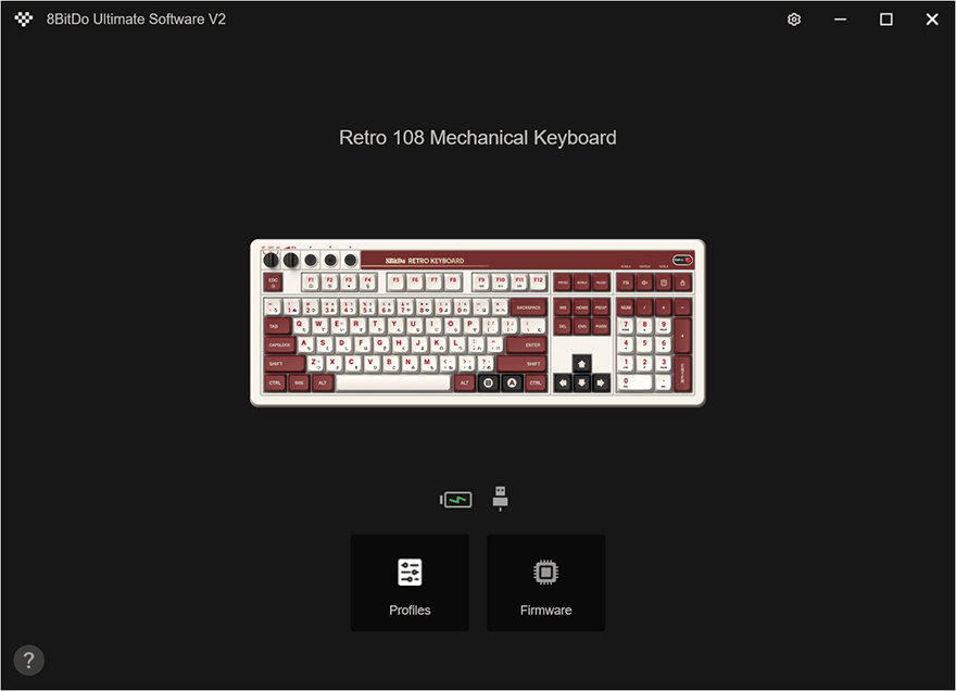 그리고, 레트로 108 키보드는 자사의 게임컨트롤러 제품에서도 사용되는 공용 프로그램 Ultimate Softwave V2도 지원합니다. Ultimate Softwave V2 프로그램을 다운로드하여 실행하면, 인식된 키보드를 확인할 수 있고, 기본 화면에서 충전 상태와 함께 아래에 프로파일과 펌웨어 2가지 메뉴를 확인할 수 있는데, 펌웨어를 통해서는 키보드와 동글 수신기 업데이트를 할 수 있고, 기본 화면 오른쪽 상단에 있는 설정 버튼을 누르면 프로그램 언어와 자동 실행 등 설정할 수 있습니다. 그리고, 프로그램에서 키보드 기능을 사용하기 위해서는 먼저 프로파일을 만들고, 만든 프로파일을 불러오면 키보드 기능 설정 화면을 볼 수 있는데, 메뉴는 크게 Keys, Macros, Volume으로 Keys는 키보드의 키와 슈퍼 버튼의 기능을 사용자가 설정할 수 있습니다. 매크로 역시 동일합니다. 볼륨 설정은 키보드 왼쪽 상단에 배치된 볼륨조절 다이얼을 한 단계씩 돌릴 때 볼륨조절 단계를 의미하며, 기본 설정은 2단계씩 조절되게 적용되어 있습니다.