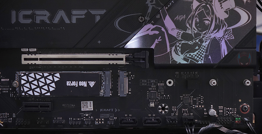 끝으로, 저장장치인 SSD 같은경우에는 iCraft B850 AIGA 메인보드에 총 4개의 M.2 SSD 슬롯을 갖추고 있는데, 앞서 확인했듯이 M.2 슬롯 1번과 2번은 PCIe 5.0x4, 3번과 4번은 PCIe 4.0x4까지 지원합니다. 그래서, 각 슬롯에서 지원하는 최대 지원 규격에 맞춰 해당 지원 SSD 제품을 장착해 CrystalDiskMark로 확인해 보면, PCIe 5.0x4 최대 읽기와 쓰기 속도, PCIe 4.0x4 최대 읽기와 쓰기속도 모두 제대로 발휘되는 걸 확인할 수 있죠.