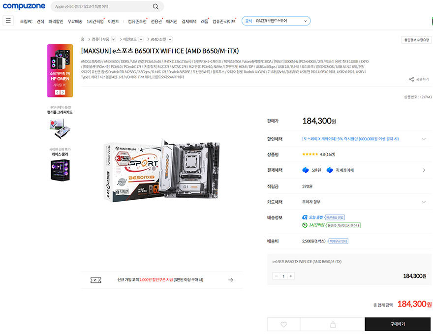 국내 메인보드시장에서도 활동하고 있는 맥선(MAXSUN)은 작년 연말부터 최신 인텔 메인보드에서만 적용되던 모바일 UI 모티브의 새로운 UI 바이오스 PMT 바이오스를 최신 AMD 메인보드에도 적용하기 시작했다. 그래서, 지난 시간에 맥선 AMD 메인보드의 PMT 바이오스 업데이트 가이드 시간을 가졌는데, 피스커뮤에서 사용한 메인보드는 아직 국내에는 출시되지 않은 모델이라 소비자들에겐 다소 아쉬운 부분이 있었다. 맥선의 AMD 메인보드에서 PMT 바이오스가 적용되는 모델은 AMD X870/B850기반 모델로 국내에서는 유일하게 해당해되는 모델이 'e스포츠 B850ITX WIFI ICE' 메인보드이다. 특히, e스포츠 B850ITX WIFI ICE 메인보드는 국내에서 AMD B850 ITX 메인보드 중 가장 저렴해서 소비자들이 많이 선택하고 있다. 그래서, 이번 시간에는 e스포츠 B850ITX WIFI ICE 메인보드에 초점을 맞춰서 다시한번 PMT 바이오스 업데이트 가이드 시간을 가져보겠다.