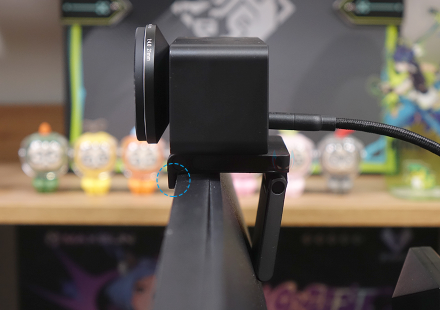 직접 엘가토 페이스캠(FACECAM) 4K 웹캠을 사용해 보면, 일단 필자의 경우 렌즈 보호를 위해 49mm 필터를 장착했습니다. 엘가토에서도 CPL 필터를 별로도 판매하고 있으며, 꼭 엘가토 제품이 아니라도 49mm 필터면 호환 장착이 가능합니다. 그리고, 기본 제공되는 모니터 마운트를 웹캠 밑바닥에 체결해 주고, 접이식 거치대를 펼쳐서 모니터에 장착해 주면 기본 고정은 끝납니다. 마운트 앞부분에 모니터 걸이가 있기 때문에 모니터를 흔들지 않는 이상 떨어질 일은 거의 없고, 마운트에 하방향으로 각도조절도 가능하기 때문에 최대 90도까지 카메라 각도를 잡을 수 있습니다. 또한, 기본제공의 모니터 마운트라 아니라도 웹캠의 1/4"인치 나사홀이 있어서 삼각대나 붐암 스탠드에도 장착할 수 있어서 환경에 따라 웹캠 위치를 잡으면 됩니다.