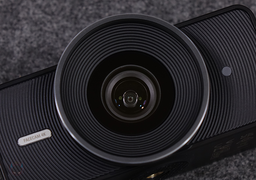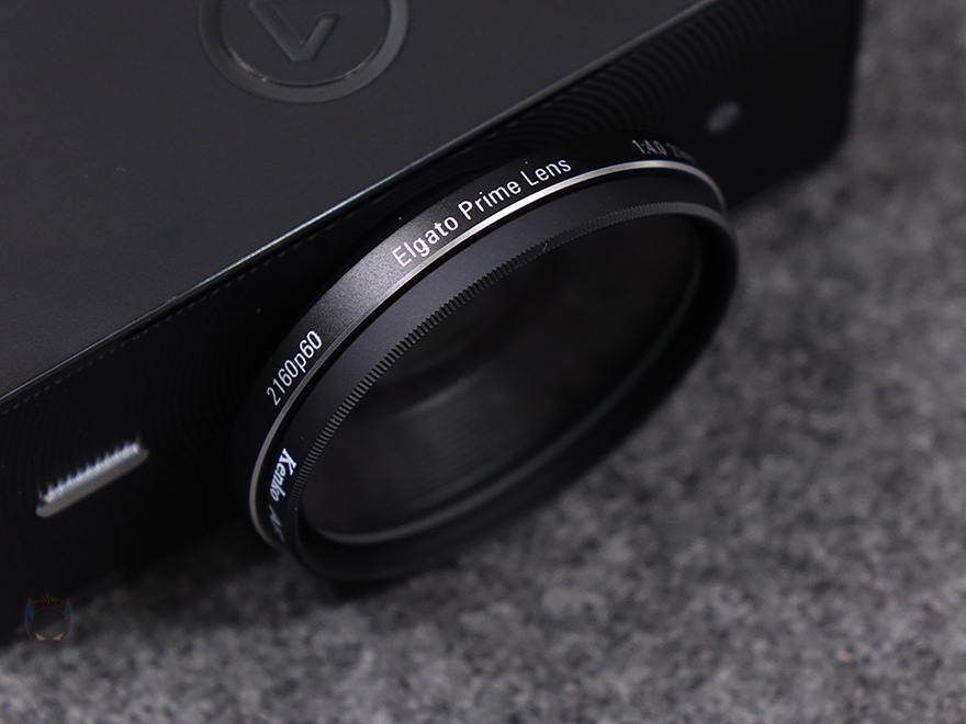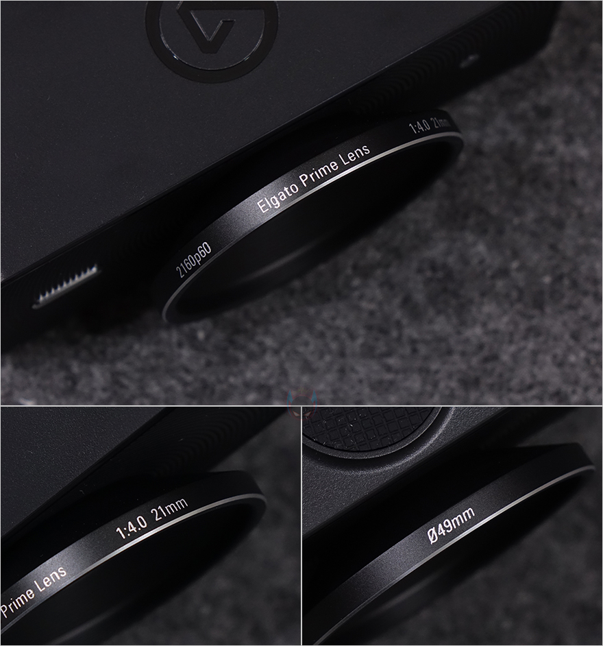 본격적으로 엘가토의 페이스캠 4K 웹캠을 살펴보면, 앞서 제품박스에서 이미지로 먼저 확인했듯이 전체적인 형태는 웹캠 모양입니다. 하지만, 가운데 카메라 부분이 마치 일반 카메라의 렌즈 구경처럼 적용되었죠. 내부에는 이미 주요 특징에서 확인했듯이 소니의 스타비스 2 카메라 모듈을 탑재하고 있으며, 최대 4K 60 프레임을 지원합니다. 이는 렌즈 테두리 부분에도 표기를 해놔서 확인할 수 있는데, 추가로 f/4.0 조리개, 21mm 초점거리, 그리고 49mm 구경 표기도 확인할 수 있습니다. 특히, 페이스캠 4K 웹캠은 세계 최초로 일반 카메라 렌즈에서 사용할 수 있는 49mm 필터를 장착할 수 있게 지원하고 있죠. 그리고, 카메라 기준 전면 양쪽에는 페이스캠 4K 로고와 작동 상태를 확인할 수 있는 LED 램프가 적용되어 있습니다.