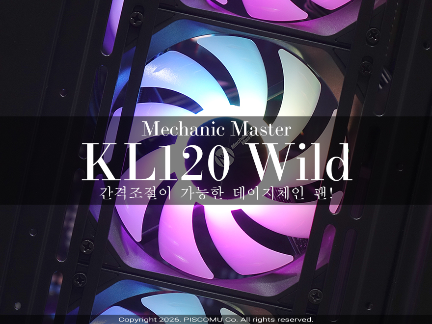 PC케이스 내부에 쿨링효과를 위해서는 팬(Fan) 사용이 필수입니다. 흔히 쿨링팬 또는 케이스팬이라고도 부르는데, 그동안 팬 제품들은 1개 1 케이블이 적용되는 형태라 여러 팬을 사용했을 시 케이블 정리가 가장 번거로운 부분이었죠. 조립 PC를 해 본 소비자라면 다들 공감합니다. 그래서, 최근에는 이런 해결방안으로 여러 팬을 사용했을 시에도 최소한의 케이블로 작동시킬 수 있는 데이지체인(Daisy Chain) 방식이 적용되고 있습니다. 데이지체인 방식은 팬끼리는 케이블 없이 연결하고, 팬 한쪽 케이블만 메인보드나 파워서플라이 또는 허브장치에 연결하는 거죠. 바로 앞선 시간에 만난 Mechanic Master(메카닉 마스터) 역시 이런 데이지체인 팬 제품이 있습니다. 바로, KL120 Wild입니다. 정확히는 KaKa Lock 시리즈의 제품으로 KL120과 KL120 Wild 2가지 모델이 있습니다. 오늘은 이 중 좀 더 개선된 제품이라 할 수 있는 KL120 Wild 팬을 만나보겠습니다. 그럼,