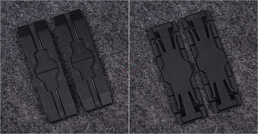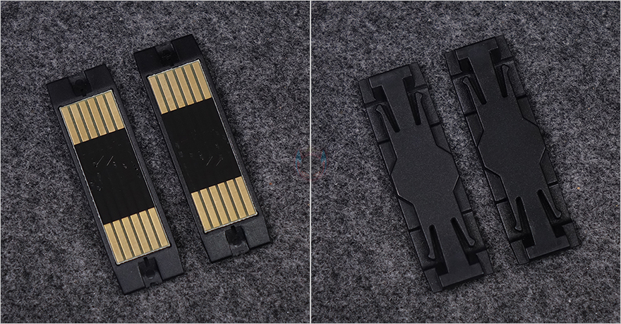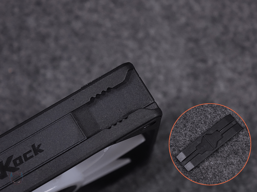KL120 Wild 팬의 데이지체인 방식은 KaKa Link 피스와 KaKa 플러그라고 명칭 하는 클립 형태의 연결 커넥터를 사용하는데, KaKa Link 피스는 방금 확인한 연결 홈에 따라 한쪽은 포고핀 와 접촉되는 단자가 적용되었고, 나머지 한쪽은 길이만 똑같은 피스입니다. 그리고, KaKa 플러그는 총 6개 구성으로 길이가 짧죠. 연결 방법은 간단합니다. 팬끼리 연결할 때는 KaKa Link 피스를 사용하는데, 포고핀과 그냥 홈만 있는 구분에 따라 피스를 사용하면 되죠. 특히, 피스 부분에는 돌기처럼 걸리는 부분이 있어서 총 4단계로 간격 조절이 가능합니다. 그리고, 팬끼리 연결되지 않은 나머지 홈 부분들은 깔끔하게 마감할 수 있도록 KaKa 플러그를 끼워주면 됩니다.