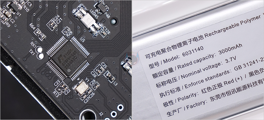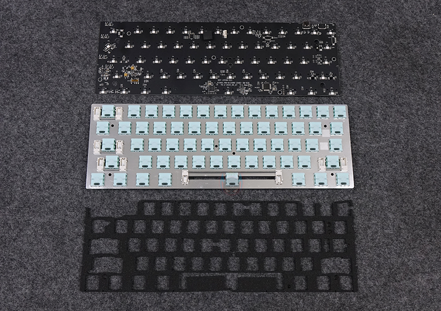 사용 전, FUN60 Max 키보드 내부를 잠깐 살펴보면, 키캡 분리 후 스위치 고정의 알루미늄 플레이트 보강판에 있는 나사를 풀면 키보드 분해를 어렵지않게 할 수 있습니다. 분해를 통해 PCB 기판에서 RongYuan사의 MCU 칩셋을 확인할 수 있고, 무선 사용을 위한 배터리는 3000mAh 용량임을 확인할 수 있죠. 또한, 알루미늄 플레이트와 PCB기판 사이에 흡음재가 적용된 것도 확인할 수 있습니다. 끝으로, 무선 2.4G 사용 시 이용되는 리시버는 흔히 나노 리시버라 부르는 작은 크기이며, 유선 및 충전 시 사용되는 USB 케이블은 약 1.7m 길이에 USB-A to C 인터페이스를 가졌고, 신호손실 최소화를 위해 금도금 처리가 되어있습니다.