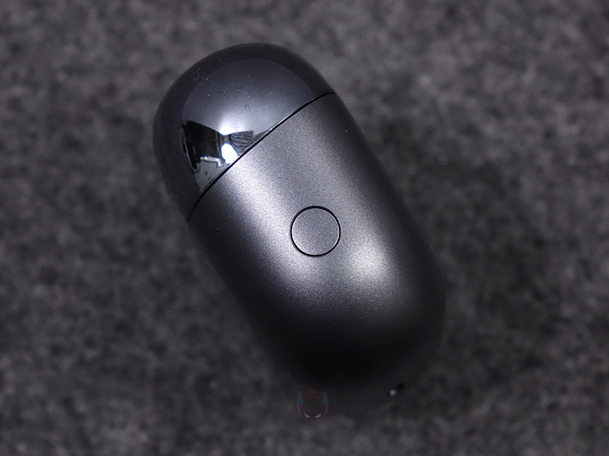 좀 더 자세히 살펴보면, 충전케이스 전면 아래에는 연결상태와 충전상태를 확인할 수 있는 LED 인디케이터가 적용되어 있으며, 같은 위치에서 좀 더 내려가 케이스 밑바닥부분에는 USB 충전케이블과 연결되는 USB-C 포트가 배치되어 있습니다. 그리고, 전면 기준 오른쪽 측면에는 페어링 버튼이 배치되어 있고, 측면에서 맥기 코팅의 오픈 부분 경계가 경사각을 가진 것도 확인할 수 있죠. 케이스를 열면, 다른 무선 이어폰 제품들과 마찬가지로 이어폰이 좌우구분으로 수납된 걸 확인할 수 있습니다. 참고로, 케이스 뚜껑 역시 반자동과 마그네틱 방식이며, 충전케이스의 배터리 용량은 300mAh입니다.