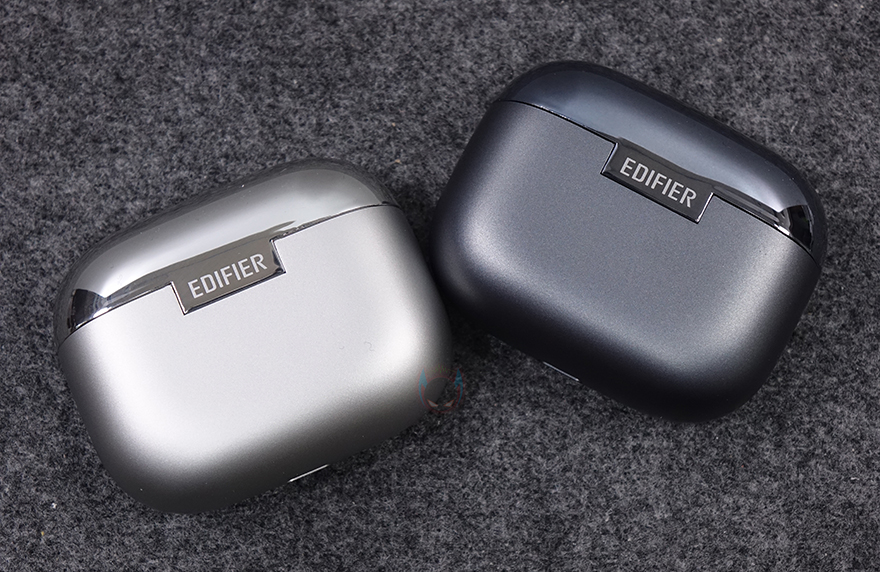 본격적으로 에디파이어(Edifier) EvoBuds Pro 무선 이어폰 충전케이스부터 살펴보면, 충전케이스에서 호불호가 적은 흔히 조약돌 디자인이라 부르는 타워형 모양을 가졌습니다. 그리고, 앞서 제품 박스에서 미리 확인했듯이 색상은 실버(Silver)과 그레이 정확히는 스페이스 그레이(Space Gray)로 2가지 출시했고, 한눈에 봐도 밝고 어둠의 대비로 쉽게 구분이 되죠. 케이스 윗부분의 뚜껑 오픈 부분에는 고광택 메탈릭 느낌의 맥기 코팅을 적용했는데, 코팅 부분 역시 케이스 아랫부분과 비슷한 색계열로 통일했습니다. 그리고, 케이스 후면 오픈 부분의 힌지에는 EDIFIER 로고를 새겨놨고, 무게는 약 50g으로 휴대성에 최적입니다.
