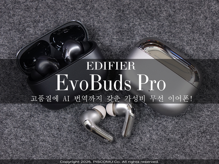 스마트폰이 등장하면서 스마트폰과 함께 많이 사용하는 대표적인 웨어러블 기기가 바로 무선이어폰입니다. 특히, 이제는 무선 이어폰 시장이 커지면서 다양한 가격대와 함께 품질도 좋아져 가성비 경쟁이 치열해지고 있습니다. 이런 가성비 경쟁에서 빠질 수 없는 대표적인 글로벌 음향기기 업체 중 하나가 바로 에디파이어(Edifier)죠. 에디파이어는 이미 국내 소비자들에게 스피커와 무선 헤드폰으로 큰 인기를 받고 있는데, 무선 이어폰 제품 역시 꾸준히 출시하면서 최근 함께 인기 반열에 들어가고 있습니다. 그중에서도 오늘 만나볼 제품은 글로벌시장에서 커널형으로 출시한 EvoBuds Pro입니다. 기본 모델인 EvoBuds는 오픈형, 프로 모델은 커널형으로 구분해서 출시했죠. 그럼, 에디파이어의 EvoBuds Pro 무선 이어폰을 만나보겠습니다.