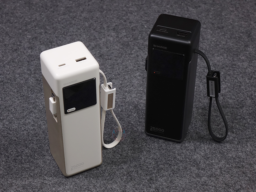 본격적으로 SHARGE의 HyperTower 170 보조배터리를 살펴보면, 색상은 블랙(Black)과 화이트(White) 2가지로 출시했는데, 화이트 색상 같은 경우 정확히는 아이보리(Ivory) 색상에 가깝습니다. 일반적으로 블랙이나 실버 색상 계열의 보조배터리 제품들이 많기 때문에 오히려 이런 밝은 색의 제품은 좀 신선하다 할 수 있죠. 크기는 159.8x53.4x52.2mm로 비슷한 용량의 보조배터리 제품들과 비슷한 크기이며, 무게는 약 678g입니다.