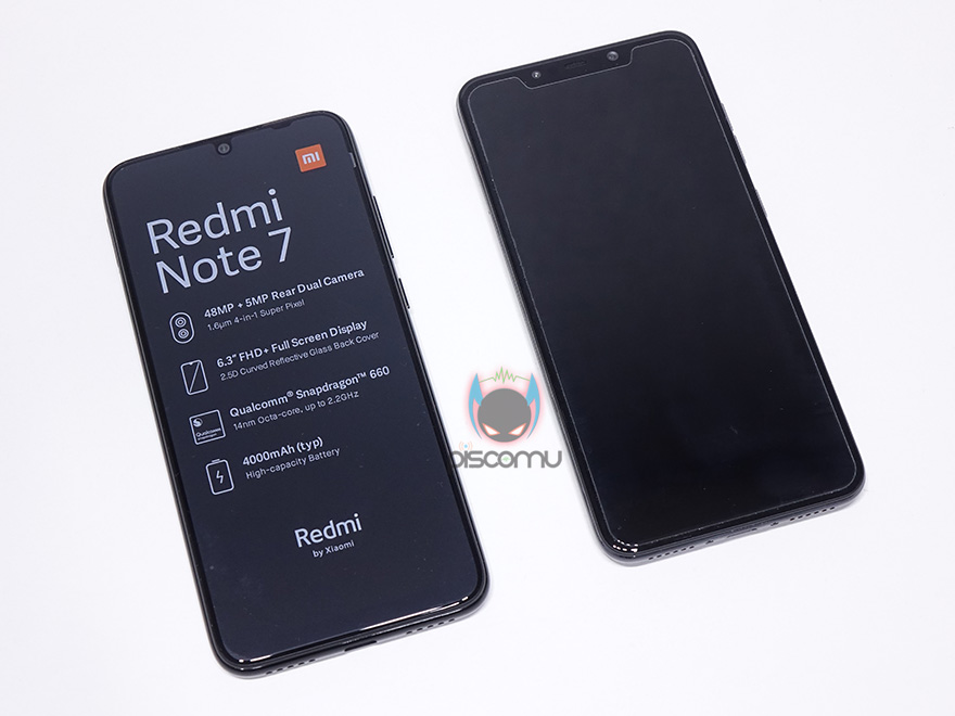 그럼, 본격적으로 홍미노트7을 살펴보는데요, 일단 크기는 제가 사용하고 있는 포코폰보다 눈으로 봤을 때 조금 더 길다라는 것을 알 수 있죠. 좀 더 정확하게는 폭도 조금 넓어졌구요. 무게와 두께는 줄어들었습니다. 확실히 만져보면 가볍다라는 느낌이 들더라구요. 그리고, 박스 후면에서 봤던 간략한 스펙 사양도 홍미노트7 기본 보호필름에도 표기가 되어있어서 다시 확인할 수 있습니다.