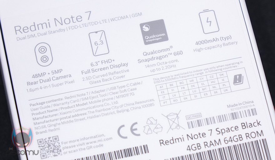 그리고, 박스 뒷면에는 간략하게 제품의 스펙 정보 몇 가지는 표기해놨는데, 후면카메라화소, 디스플레이 크기, 스냅드래곤 660, 배터리 용량을 확인할 수 있습니다. 개인적으로는 배터리 용량이 마음에 드네요. 현재 제가 사용하고 있는 포코폰이 4000mAh 용량인데, 게임이나 동영상을 봐도 하루 이상 가거든요~한마리로 빵빵합니다~ㅋㅋ