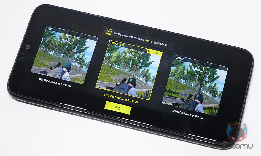 실제로 고사양 게임의 대표적인 모바일게임 배틀그라운드를 실행해봤는데요. 처음 실행시 게임 기본 설정은 밸런스 화질로 잡히지만, 사용자가 최대 HD화질과 FPS 높음까지 설정할 수 있습니다. 실제로 플레이도 해봤는데, 역시 고사양 게임이라 약간의 인풋렉 같은 화면 딜레이가 좀 있습니다. 그렇다고 딱 끊기고 하지는 않아요. 기본적인 2D게임부터 사양이 높지 않은 3D게임은 충분히 소화를 해줄 것 같습니다.