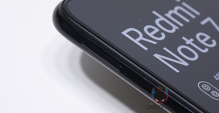 홍미노트7은 3가지 컬러로 출시되었죠. 스페이스 블랙, 넵튠 블루, 네뷸라 레드. 그냥 쉽게 말해, 블랙, 블루, 레드입니다. 제가 구입한 건 스페이스 블랙인데요. 후면을 보면 쉽게 말해 피아노코팅처럼 유광처리가 되어있어서 상당히 고급스러우면서 물체가 비칠정도로 반사가 있습니다. 물론, 단점은 지문이 잘 묻는다라는 거죠. 원래 이런 피아노코팅 유광의 대표적인 단점이니깐요^^;