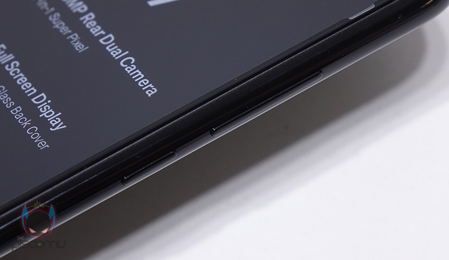 이번엔 테두리 부분을 살펴볼까요~오른쪽에는 기본적으로 볼륨조절과 전원 버튼이 배치되어 있고, 왼쪽에는 유심카드슬롯이 배치되어 있습니다. 그리고, 전면 방향에는 3.5mm 이어폰 포트와 마이크, 적외선 수신기가 배치되어 있고요, 아랫쪽에는 UBC 타입 C 포트와 스피커가 배치되어 있는데, 스피커는 오른쪽에 적용되어 있죠.