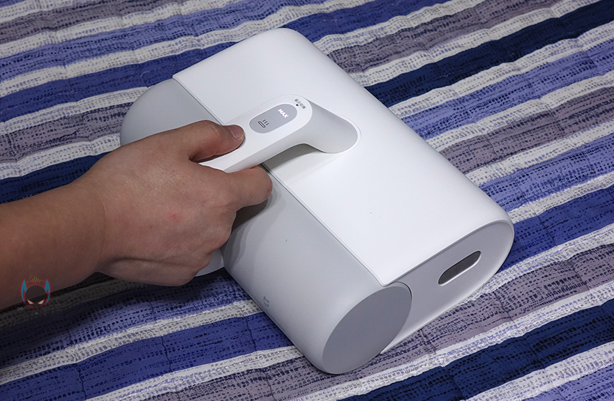 그럼, 직접 샤오미 집먼지진드기 무선청소기를 사용해봐야겠죠?! 위에서 UV램프 이야기할 때 잠깐 언급했지만, UV램프 작동은 아래 사진처럼 바닥면에 닿으면 자동으로 켜집니다. 그리고, 들어올리면 자동으로 꺼지구요. 또한, 각 버튼마다 눌러서 On 상태일 때는 화이트 LED로 점등표시를 알려줍니다.