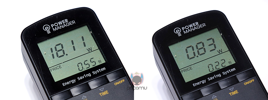 끝으로, 소음과 충전시 소비전력을 측정해봤는데요. 일반 기본 전원의 흡입력일 때는 약 71dB(A) 데시벨, MAX 흡입력일 때는 약 78dB(A) 데시벨로 지난 부 리뷰했던 샤오미 V9보다는 낮은 것을 확인할 수 있어서, 생각보다 소음은 크지 않은 편입니다. 그리고, 충전시 소비전력은 확인해 본 결과 충전중일때는 약 18W정도이고, 완충이 된 상태일 때는 0.8W로 대기모드로 작동됩니다. 참고로 완충 후 시간이 좀 지나면 전원버튼의 LED도 자동으로 꺼져서 0.6W까지 내려갑니다. 충전중일때는 전원버튼 LED가 깜빡입니다.