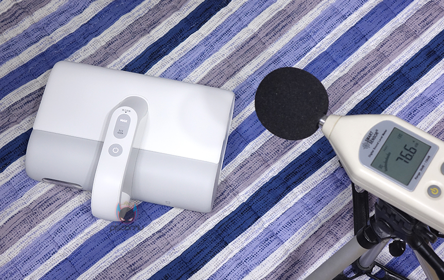 이번에는 제습기능을 한 번 써보는데요. 세탁해놓은 침구류가 없어서, 매트에 한 번 살짝 물기를 적셔놓고 해봤습니다. MAX버튼 바로 아래에 제습기능 버튼 누르면 바로 작동. 참고로 MAX 단계에서도 제습기능 됩니다. 5~6번정도 왔다갔다했는데 물기가 사라졌네요. 제습기능의 효과도 있겠지만, UV램프가 있는 것도 도움이 되었지 않았나 생각이 듭니다. 참고로 MAX에 제습까지 켜서 사용하면 대략 7분정도 사용, MAX만 사용했을 시에는 8분, 기본 전원의 흡입력으로만 했을 시에는28분 좀 넘게 사용가능. 기본 전원에 제습기능까지 사용하면 20분정도 사용이 가능하다고 하네요.