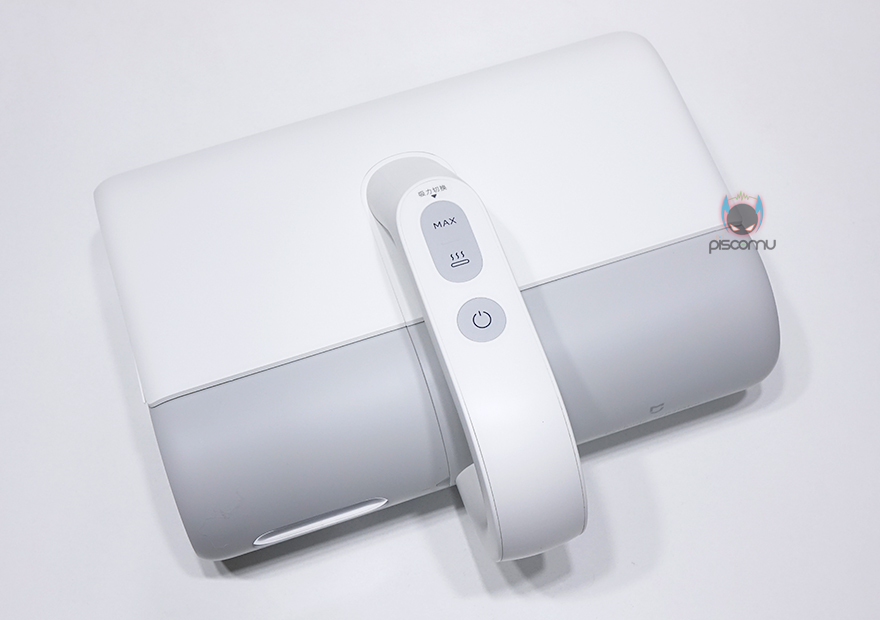 손잡이 부분에는 전원버튼과 속도조절, 그리고 제습기능 버튼이 있는데, 전원버튼을 누르면 1단계 흡입력으로 작동되며, MAX 버튼을 누르면 2단계 최대 흡입력 16,000Pa로 작동됩니다. 그럼, 1단계 흡입력은 아무리 못해도 8000Pa정도 수준일 것이라는 짐작을 할 수 있겠죠. 아마 국내에서 판매되고 있는 일명 샤오미집먼지진드기청소기라 불리우는 SWDK제품을 알아본 분들이 많을텐데, 그 모델은 최대가 6000Pa입니다. 즉, 이 미지아집먼지진드기 무선청소기는 1단계만해도 다른 집먼지진드기 제품들과 비슷하고, 2단계 최대로 했을 시에는 지금 한참있기 있는 샤오미 무선청소기 같은 10만원 중반대의 보급형 무선청소기 흡입력을 가지고 있다고 보면 됩니다. 실제로 현재 집먼지진드기청소기 중에서 가장 흡입력이 높아요~그리고, MAX버튼 바로 아래에 있는 버튼인 제습기능 버튼인데, 이부분 뒤에서 실제 사용할 때 한 번 언급할게요.