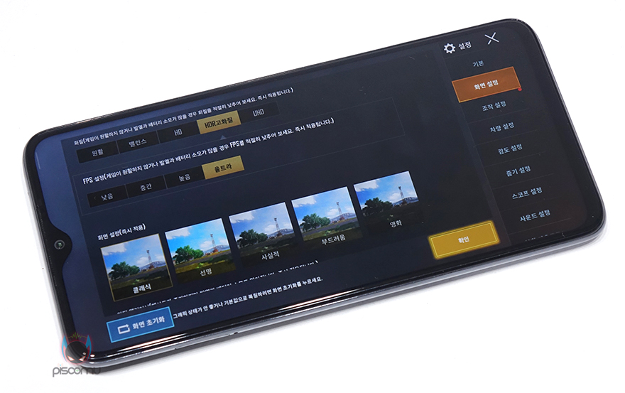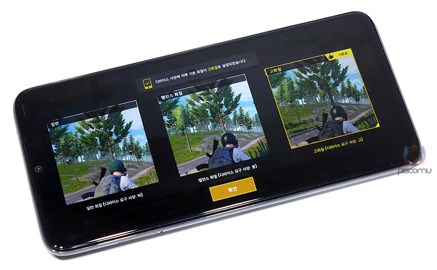 실제로 대표적인 모바일게임 배틀그라운드를 실행해봐도, 기본설정에서 고화질로 자동선택되고, 화면설정도 최대 HDR화질과 울트라 FPS까지 적용되는 것을 확인할 수 있죠. 실제로도 플레이를 해봤는데, 포코폰 F1과 큰 차이를 느낄 수 없었고, 그동안의 미디어텍 모바일 CPU가 저가형이라는 이미지가 강했다면, 이번 헬리오 G90T는 새롭게 가성비 모바일CPU로 볼 수 있는 계기가 될 것으로 생각이 듭니다. 참고로, 현재 출시된 6400만화소 보급형 스마트폰(리얼미 XT, 삼성 갤럭시 A70s) 중에서는 가장 성능이 뛰어납니다.