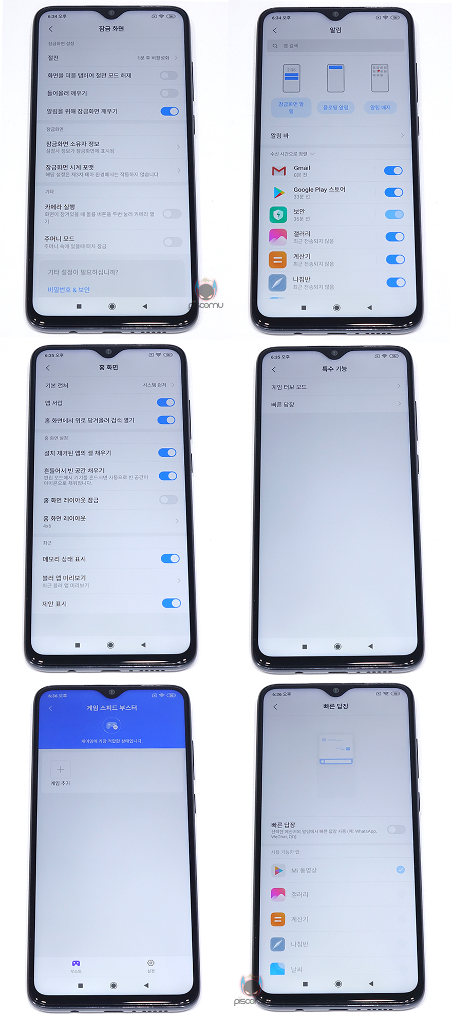 설정 메뉴를 살펴보면, 홍미노트8 프로 역시 현재 MIUI 10이 들어갔기 때문에 얼핏봐서는 기존 제품들과 차이가 없는 것 같지만, 몇 가지 좀 더 편리해진 메뉴가 있습니다. 바로, 잠금화면과 알림, 홈화면이 각각 분리되어서 독립메뉴로 바로 나와있다라는거죠. 이전 홍미노트7이나 미9시리즈 등 예전 제품들은 잠금화면이나 알림, 홈화면이 묶여있는 메뉴형태로 한 번 더 들어가야 분류되어 있는 형태로 조금 불편했는데, 이 홍미노트8 프로는 그런 불편함을 조금은 줄여줬습니다. 그리고, 새로운 기능이 하나 추가되었는데, 바로 특수기능으로 이 메뉴에는 쉽게 말해 샤오미가 그동안 미9이나 포코폰 같은 고성능 스마트폰에서 선보였던 게임부스터 어플 기능을 아예 설정 메뉴로 넣어서 게임어플만 선택해놓으면 바로 게임실행이 부스트기능이 작동됩니다. 홍미노트8 프로가 게이밍컨셉도 갖추고 있기 때문에 이 기능도 나쁘지않다 할 수 있죠.