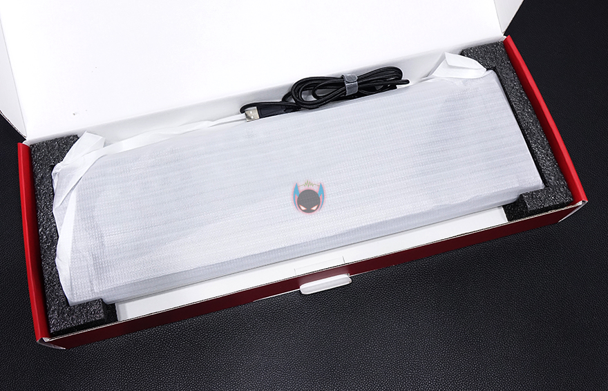 그리고, 키보드 측면에서 보면 타이핑에 최적화라 불리우는 스텝-스컬처2 단계배열을 갖추고 있고, 키보드 밑바닥부분에는 아랫부분과 앞쪽에 높낮이 받침대부분에 고무패드를 적용하고 있으며, 케이블은 꼬임방지를 위해 패브릭 케이블로 적용, 총 1.5m의 길이와 신호손실을 최소화 되도록 노이즈 필터를 적용했습니다. 연결 인터페이스는 USB방식으로 전송제어속도(폴링레이트) 1000Hz를 지원해서 반응속도는 경쟁사들처럼 빠르다 할 수 있습니다.