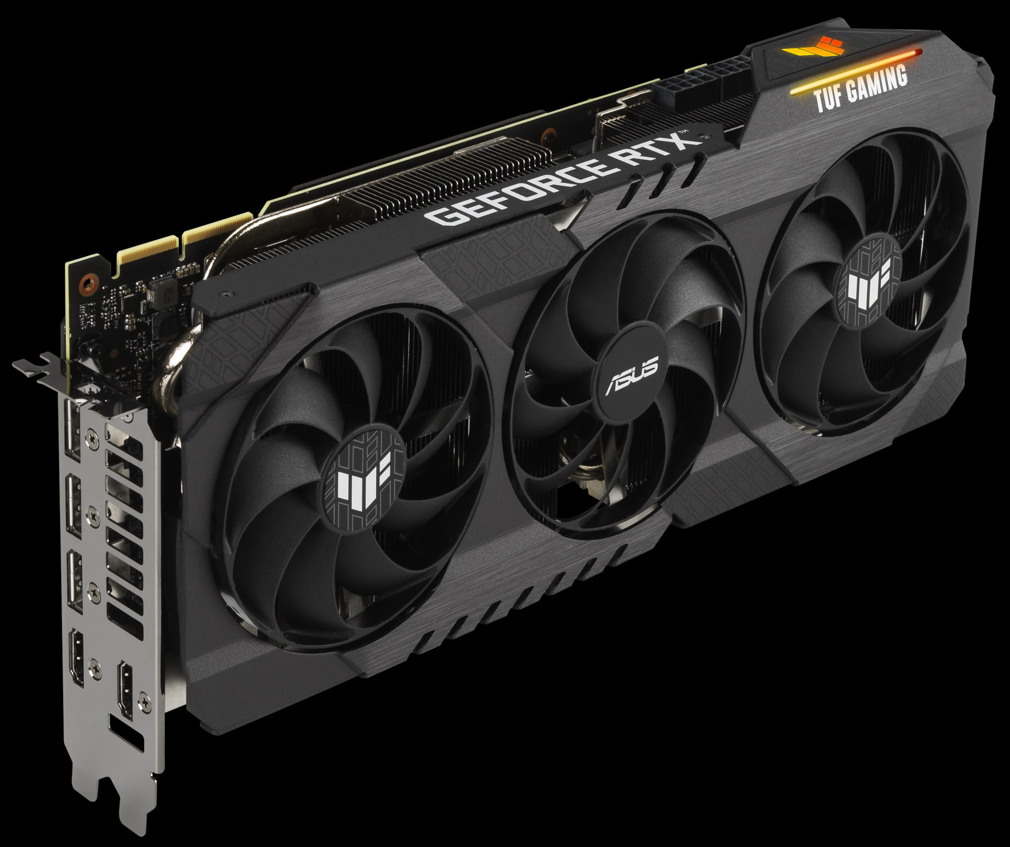그리고, 또다른 라인업 TUF 시리즈의 지포스 RTX3000 제품군의 디자인도 약간 변화가 생겼습니다. 높이는 2.7슬롯이라고 하고, 역시 트리플-팬 구성에 측면에 TUF 로고 라이팅효과를 적용했으며, 일단 처음에는 지포스 RTX3090/3080 모델에만 적용이 될거라고 합니다. 그리고, 역시 뒷면 백플레이트 맨 오른쪽에 에어홀 처리를 했구요. 그리고, 지포스 RTX3070 모델에 적용될 듀얼 팬 구성의 DUAL 라인업도 2.7슬롯이며, 백플레이트 적용에 디자인은 기존 제품군과 큰 차이가 없습니다.