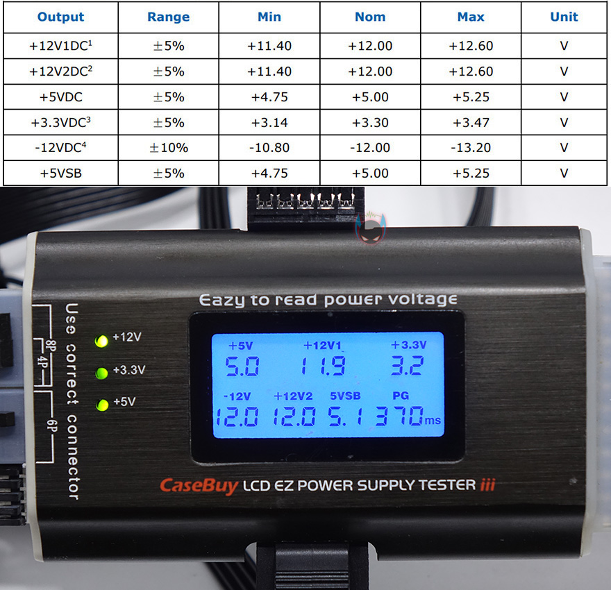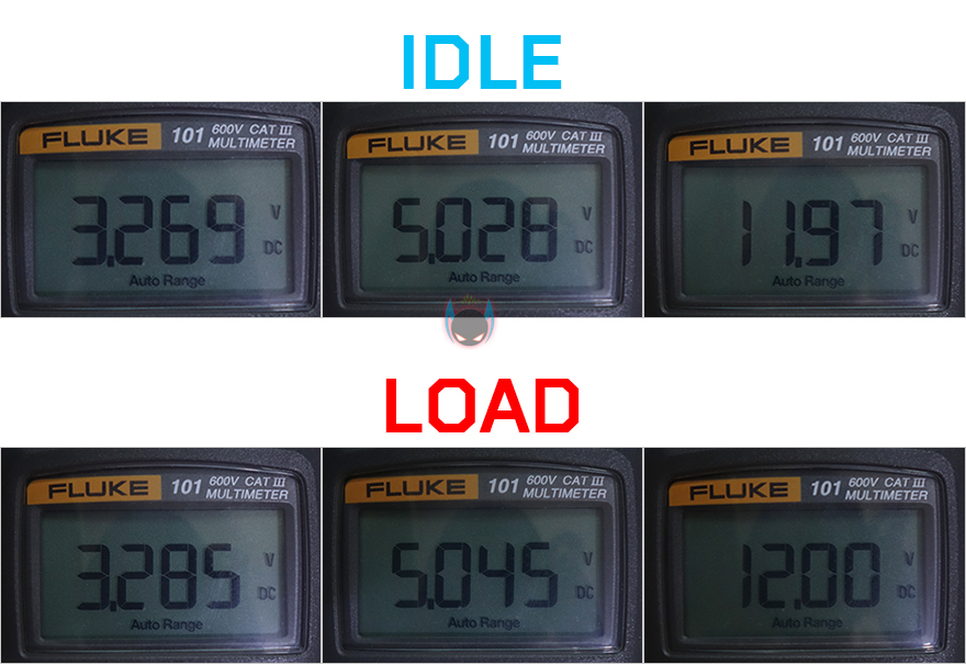 실제로 Montech 센추리(Century) 파워서플라이를 사용해보면, 일단 필자는 650W로 실사용 시스템에서 전압출력 상태를 확인하기 전, 기본작동상태에서 전압상태를 확인해보면, 인텔 파워서플라이가이드 표준범위에서 정상적으로 출력되는 것을 확인할 수 있으며, 실사용 시스템에서 OCCT 프로그램을 통해 IDLE과 LOAD 각 상황에 12V, 5V, 3V의 전압출력 상태를 확인해 본 결과 매우 안정적인 것을 확인할 수 있었습니다. 특히, 각 전압 모두 각 상황에서 변동폭이 없거나 0.001v 수준으로 매우 안정적이고, 전체 변동폭도 정상범위안에서 작은 편인 것을 확인할 수 있었습니다.