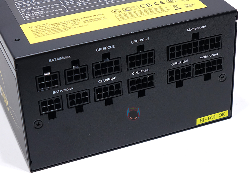 그리고, 본체 상단부분에는 벌집 모양의 에어홀처리와 함께 내부에 120mm 팬이 장착된 것을 확인할 수 있으며, 후면 배기역할도 벌집 모양으로 에어홀 처리가 된 것을 확인할 수 있죠. 본체 밑바닥부분에는 해당 모델의 제품사양을 다시 한 번 확인할 수 있는데, 참고로 이번 센추리(Century) 모델은 550W, 650W, 850W 3가지 용량으로 출시되었습니다.