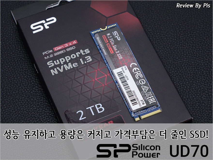 현재 SSD시장은 SSD의 최대 장점인 빠른 속도를 유지하면서 용량은 커지고, 가격은 저렴해지기 때문에 기술적으로 계속 발전하고 있죠. 좀 더 구체적으로 말하자면 낸드플래시 타입과 컨트롤칩셋을 통한 단가를 계속 줄이면서 용량은 커지고, 성능은 유지하는 SSD 제품들을 출시할려고 노력하고 있습니다. 현재 가장 빠른 SSD 방식은 PCIe 4.0x4레인 방식의 NVMe SSD지만, 아직까지 많은 PC부품들이 이 방식을 지원하는 것이 아니기 때문에 대체적으로는 PCIe 3.0x4레인방식 NVMe SSD 제품들을 많이 사용합니다. 읽기/쓰기속도가 최대 3000MB/s 수준이상을 보여주는 방식이라 일반 S-ATA 방식의 SSD보다 5~6배가량 빨라 현재로도 충분히 빠르다고 느껴지죠. 그래서, 이 PCIe 3.0x4레인 방식의 속도유지를 하면서 용량은 크고 가격은 더 줄일 수 있는 제품들이 최근 하나둘씩 나오기 시작했는데, 실리콘파워에도 그 제품이 있습니다. 바로, UD70 모델이죠. 출시가가 무려 2TB 모델임에도 189.99달러(한화로 약 22만원)입니다. 그럼, 이번 시간에는 이 실리콘파워의 UD70 SSD를 한 번 살펴보도록 하겠습니다.