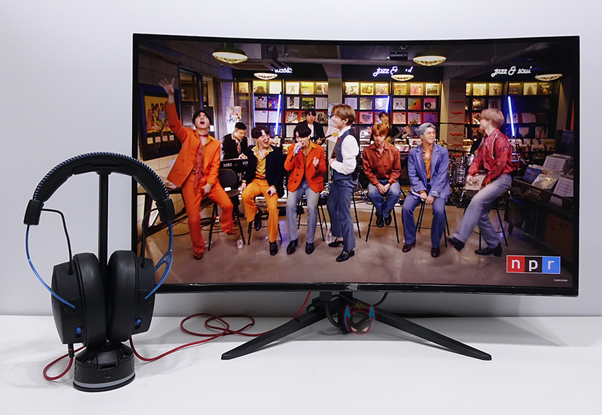 실제로 게임, 영상, 작업 환경에서 직접 사용해보면, 일단 풀-HD(1920x1080)해상도에서 위에서 언급했듯이 DP 케이블을 사용하면 최대 화면주사율은 165Hz까지 설정이 가능하며, 역동적인 게임 장르일수록 일반적인 60Hz보다 165Hz에서 화면이 더 부드럽다라는 것을 실감할 수 있습니다. 물론, 사용자가 플레이하는 게임마다 주사율 지원을 다를 수 있기때문에, 60,100,120,144,165Hz 중에 자신에게 최적이라고 느껴지는 주사율을 선택하면 됩니다. 이 외에도 영상을 보거나 작업을 하는데 있어서 색표현이나 재현은 무난한 편이라 이질감이 들지 않아서, 꼭 게임용으로만 사용할 필요는 없겠습니다. 물론, 커브드 모니터 자체에 대한 화면거부감만 들지 않는다면 말이죠. 또한, 헤드폰 포트를 지원해주고 있기 때문에 DP, HDMI 케이블 어느쪽을 사용하더라도 헤드폰을 바로 연결해서 사운드를 들을 수 있는데, OSD 기본 음량은 25로 설정 되어있기때문에 윈도우에서 100% 볼륨을 올려도 작은 편이니 50이상으로 올려서 사용하면 무난하겠습니다. 물론, 헤드폰 말고도 3.5mm 규격 잭으로 된 스피커를 연결해서 사용해도 됩니다.