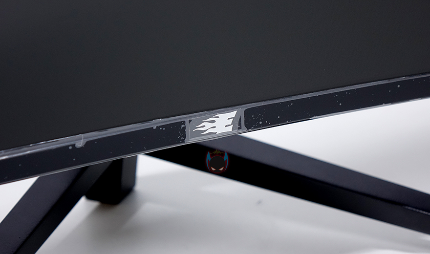 그럼, 뷰싱크 이트로이 VSG271C165 모니터의 외형을 살펴봅시다. 27인치 크기의 모니터로 전면에서 봤을 때, 올-블랙 느낌을 살리고 있으며, 위에서 보면 1500R 곡면율의 커브드가 적용된 것을 확인할 수 있습니다. 요즘은 1800R~1000R까지 다양하게 나오고 있어서, 이제는 커브드도 개인취향이 다양해지고 있습니다. 1500R 곡면율이면 일반적으로 소비자들이 많이 선택하는 곡면율대라 크게 호불호는 없다고 할 수 있겠습니다. 참고로 곡면율 수치가 작을수록 더 많이 휘어집니다. 그리고, 전면 테두리 베젤은 하단부를 제외하고는 모두 1mm대로 제로베젤 컨셉을 잘 살리고 있으며, 하단분 중앙에는 이트로이 로고 메탈릭스티커를 부착해놨습니다. 하반부에 개봉시 보호비닐도 부착되어 있기때문에, 사용자 취향에 따라 떼어낼지말지 선택해도 되겠습니다.