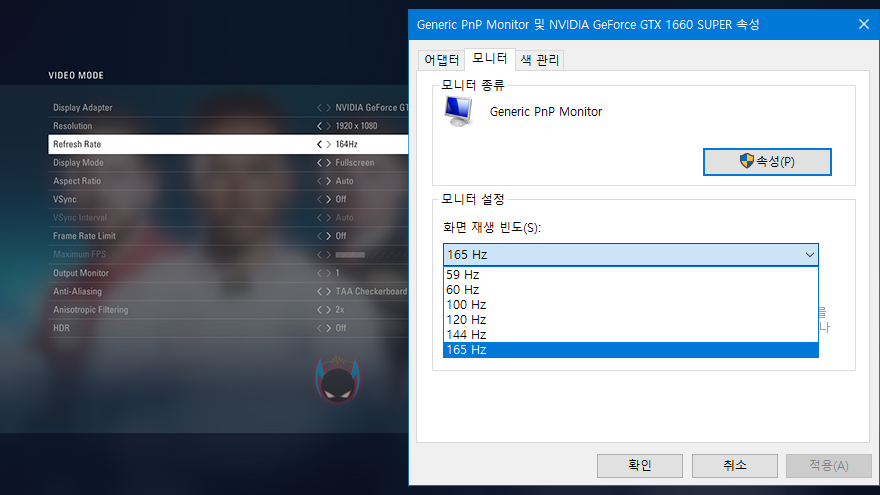 실제로 게임, 영상, 작업 환경에서 직접 사용해보면, 일단 풀-HD(1920x1080)해상도에서 위에서 언급했듯이 DP 케이블을 사용하면 최대 화면주사율은 165Hz까지 설정이 가능하며, 역동적인 게임 장르일수록 일반적인 60Hz보다 165Hz에서 화면이 더 부드럽다라는 것을 실감할 수 있습니다. 물론, 사용자가 플레이하는 게임마다 주사율 지원을 다를 수 있기때문에, 60,100,120,144,165Hz 중에 자신에게 최적이라고 느껴지는 주사율을 선택하면 됩니다. 이 외에도 영상을 보거나 작업을 하는데 있어서 색표현이나 재현은 무난한 편이라 이질감이 들지 않아서, 꼭 게임용으로만 사용할 필요는 없겠습니다. 물론, 커브드 모니터 자체에 대한 화면거부감만 들지 않는다면 말이죠. 또한, 헤드폰 포트를 지원해주고 있기 때문에 DP, HDMI 케이블 어느쪽을 사용하더라도 헤드폰을 바로 연결해서 사운드를 들을 수 있는데, OSD 기본 음량은 25로 설정 되어있기때문에 윈도우에서 100% 볼륨을 올려도 작은 편이니 50이상으로 올려서 사용하면 무난하겠습니다. 물론, 헤드폰 말고도 3.5mm 규격 잭으로 된 스피커를 연결해서 사용해도 됩니다.