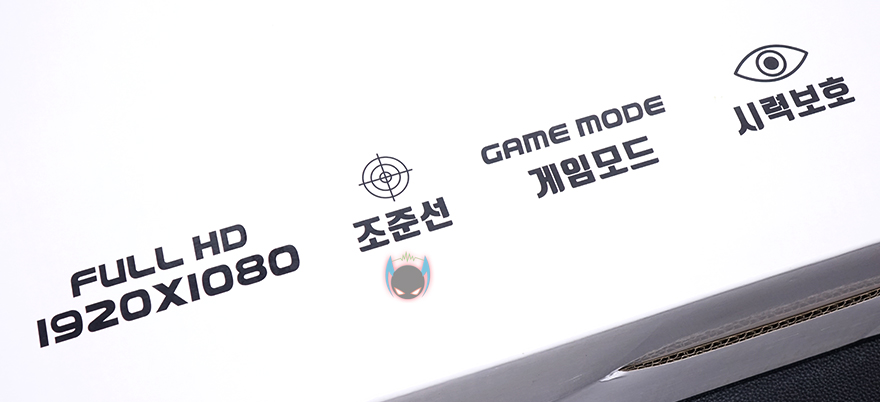 제품박스는 전후면 서로 대비되는 느낌으로 색상을 적용하는 동시에 모델명과 제품의 주요 특징을 표기해놨는데, 165Hz 화면주사율, HDR지원, 프리싱크 지원, USB, 커브드, 풀-HD(1920x1080)해상도, 조준선, 게임모드, 시력보호, 오버드라이브, 제로베젤, 친환경 인증을 대표적으로 표기해놨습니다. 요즘 왠만한 게이밍 모니터라면 갖춰야 할 기본적인 요소들을 거의 다 갖췄다고 볼 수 있죠. 이외에도 제품 A/S 관련 전화번호라든지 이동시 편의를 위한 손잡이 적용, 내부 포장된 모니터의 전면이 어느방향인지 등도 표시가 되어있고, 이트로이의 의미가 무엇인지도 제품을 개봉하다보면 자연스럽게 볼 수 있도록 표기해놨습니다.