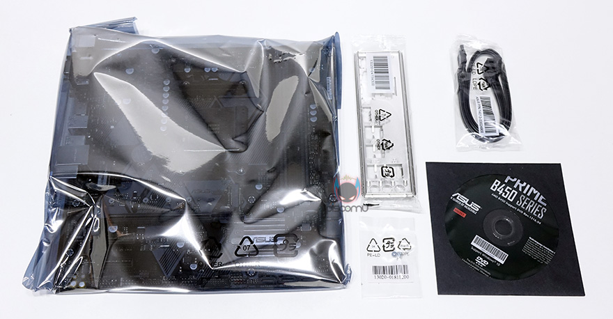 이 외에도 팬 속도조절을 할 수 있는 FAN Xpert 2+와 USB 3.1 2세대 타입 A 포트 지원, M.2 SSD PCIe 3.0 x 4레인 지원도 언급을 하는데, 이부분은 뒤에서 메인보드 레이아웃을 살펴보면서, 다시 한 번 언급하겠습니다. 그리고, 박스를 열어보면 수입사인 아이보라의 서비스 규정에 대한 약관을 먼저 확인할 수 있으며, 제품 구성에는 정전기방지 비닐에 포장된 프라임 B450M-A 메인보드와 백패널 I/O 쉴드, M.2 SSD슬롯 나사, S-ATA 케이블 2개, 드라이버 CD, 제품 설명서 및 퀵 가이드 제공으로 이루어진 것을 확인할 수 있습니다.