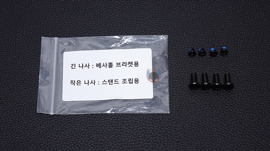 제품설명서에도 스탠드 조립 방법이 실려있지만, 이렇게 별도로 다시 A4용지에 크게 인쇄해서 조립설명서를 추가로 제공해주고 있습니다. 그리고, 스탠드 조립은 생각보다 어렵지 않습니다. 제공되는 동봉나사에 총 8개의 나사가 있는데, 긴 나사는 벽걸이때 사용하는 것이고, 짧은 나사가 스탠드의 받침대와 목부분을 결합할 때 사용합니다. 아마 초반에는 이런 동봉나사 표기가 없었던 걸로 알고 있느데, 소비자의견을 발빠르게 반영한 것 같네요.