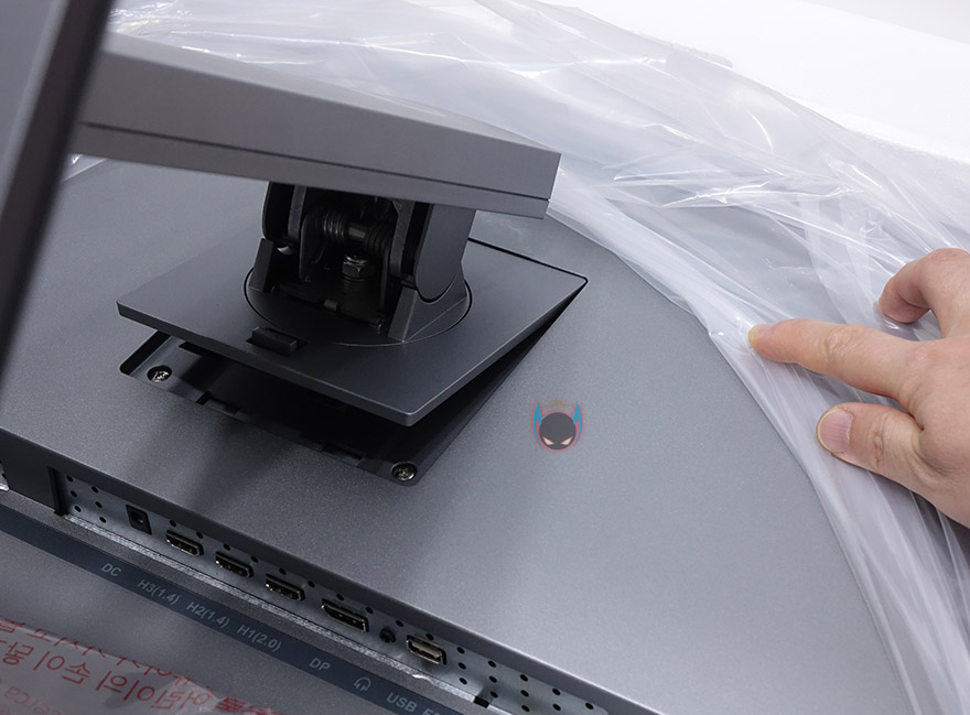 스탠드 받침대와 목부분은 모두 메탈느낌의 실버색상이며, 방금 말했듯이 받침대와 목부분을 서로 홈에 맞춘 후, 제공되는 짧은 나사를 이용해 받침대 밑바닥에서 결합 해주면 됩니다. 그리고, 조립된 스탠드를 모니터 후면에 끼워주면 되는데, 윗부분부터 끼우고 아랫부분을 끼우면 됩니다. 스탠드 조립설명서에도 적혀있지만, 모니터를 스티로폼 포장에서 꺼내지말고, 모니터 후면을 덮고 있는 스티로폼 포장만 벗겨낸 상태에서 스탠드를 끼워주고, 그다음에 나머지 화면부분을 덮고 있는 스티로폼 포장을 벗겨내주세요. 이렇게 하면 모니터 훼손없이 안전적으로 마무리할 수 있습니다.