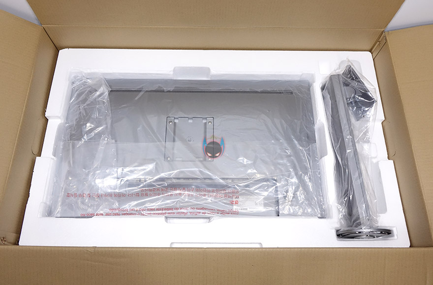 스탠드 받침대와 목부분은 모두 메탈느낌의 실버색상이며, 방금 말했듯이 받침대와 목부분을 서로 홈에 맞춘 후, 제공되는 짧은 나사를 이용해 받침대 밑바닥에서 결합 해주면 됩니다. 그리고, 조립된 스탠드를 모니터 후면에 끼워주면 되는데, 윗부분부터 끼우고 아랫부분을 끼우면 됩니다. 스탠드 조립설명서에도 적혀있지만, 모니터를 스티로폼 포장에서 꺼내지말고, 모니터 후면을 덮고 있는 스티로폼 포장만 벗겨낸 상태에서 스탠드를 끼워주고, 그다음에 나머지 화면부분을 덮고 있는 스티로폼 포장을 벗겨내주세요. 이렇게 하면 모니터 훼손없이 안전적으로 마무리할 수 있습니다.