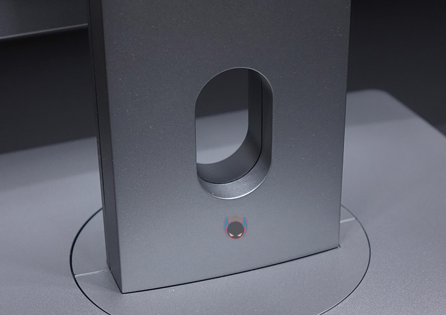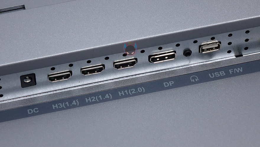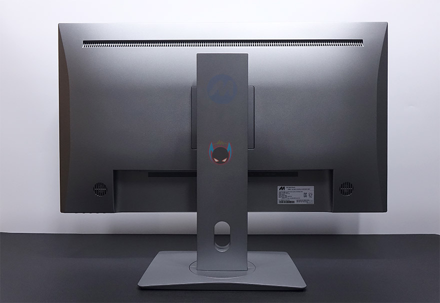플렉스 32UF10 모니터 외형 끝으로 후면을 보면 스탠드 후면에 엠디스플레이 로고를 새겨놨으며, 후면 윗부분에는 에어홀 처리가 되어있습니다. 참고로, 에어홀 내부에도 먼지필터 같은 망이 적용되어 있습니다. 그리고, 후면 양쪽 아래로는 3W 출력의 스테레오 스티커가 탑재되어 있으며, 스탠드 아랫부분에는 케이블 홀이 처리되어 있습니다. 포트구성은 왼쪽부터 전원포트, HDMI 1.4 포트 2개, HDMI 2.0 포트 1개, DP 포트, 헤드폰 포트, USB 포트순으로 배치되어 있는데, USB 포트는 펌웨어 업데이트를 할 때 사용됩니다. 개인적으로는 HDMI 포트가 2.0 버전으로 2개 지원해줬으면 좀 더 좋지 않았을까 생각이 들었습니다. HDMI 1.4버전은 4K 30Hz 주사율까지만 지원하는데, 사실상 잘 사용하지 않죠. 마우스 포인트가 움직일 때 딜레이가 보이기 때문입니다.