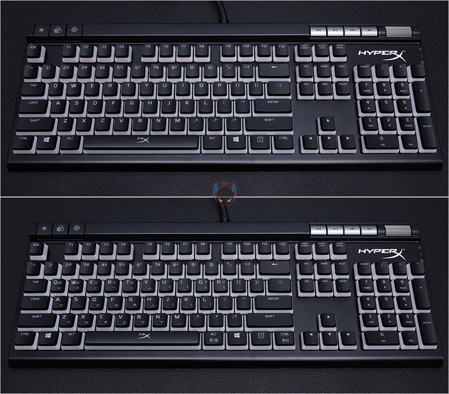 실제로, HyperX 푸딩 키-캡을 사용해보면, 앞에서 잠깐 언급했듯이 HyerpX Alloy 시리즈 키보드 중 영문자판을 사용하고 있던 소비자라면 한글자판으로 새겨진 푸딩 키-캡을 통해 한글자판 형태로 변경할 수 있습니다. 참고로 최근에 출시한 Alloy Elite2 키보드 같은경우 기본적으로 푸딩 키-캡으로 나왔죠. 그리고, 기본 베이스는 가장 표준이라 할 수 있는 체리스위치 기반으로 나왔기때문에 HyperX 자체 Aqua 스위치 외에도 체리스위치에서도 호환이 가능하고, 일명 박스 스위치라 불리우는 카일 스위치에서도 +자 모양만 갖추고 있다면 호환이 가능합니다. 그리고, 전체 키보드의 배열 레이아웃도 기계식키보드의 표준 배열과 체리식 스테빌라이저를 갖추고 있는 키보드라면 모두 호환 사용이 가능하겠습니다.