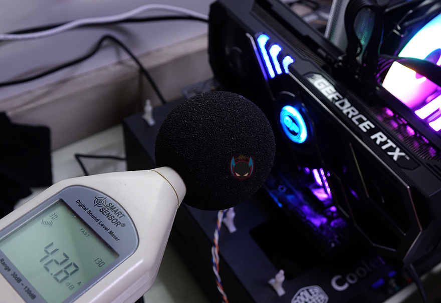Palit 지포스 RTX3070 GamingPro OC 그래픽카드는 트리플-팬 쿨러를 장착하고 있죠. 그래서, GPU 과부하를 통해 쿨러의 냉각 성능이 얼마나 좋은지 확인을 해봤습니다. Furmark를 실행해 과부하를 시킨 결과, 최대 68℃ 수준의 온도를 보여주는 것을 확인할 수 있어서, 상당히 냉각 성능은 좋다고 할 수 있겠습니다. 보통 80℃미만이면 그래픽카드 발열에 부담감이 적다고 봅니다. 그리고, 과부하기 팬 소음도 측정을 해봤는데, 약 43dB(A)수준으로 정숙한 편인 것을 확인할 수 있어서, 실제 PC케이스에 장착해서 사용한다면 좀 더 조용하다고 볼 수 있겠습니다.